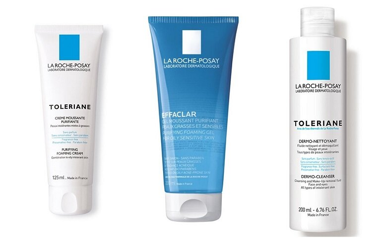 - Sữa rửa mặt La Roche-Posay Effaclar: Dành cho da dầu mụn, giúp kiểm soát bã nhờn và ngăn ngừa mụn, làm sạch sâu và loại bỏ tế bào chết trên da.